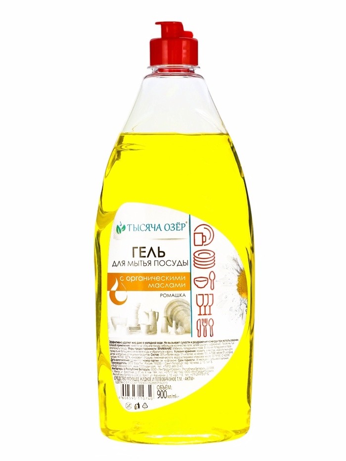 ТЫСЯЧА ОЗЁР Гель для мытья посуды "Ромашка" с органическим маслом оливы, 900 мл