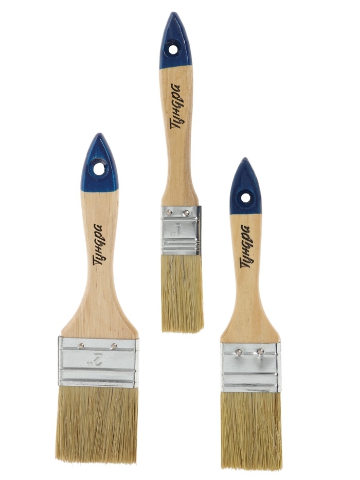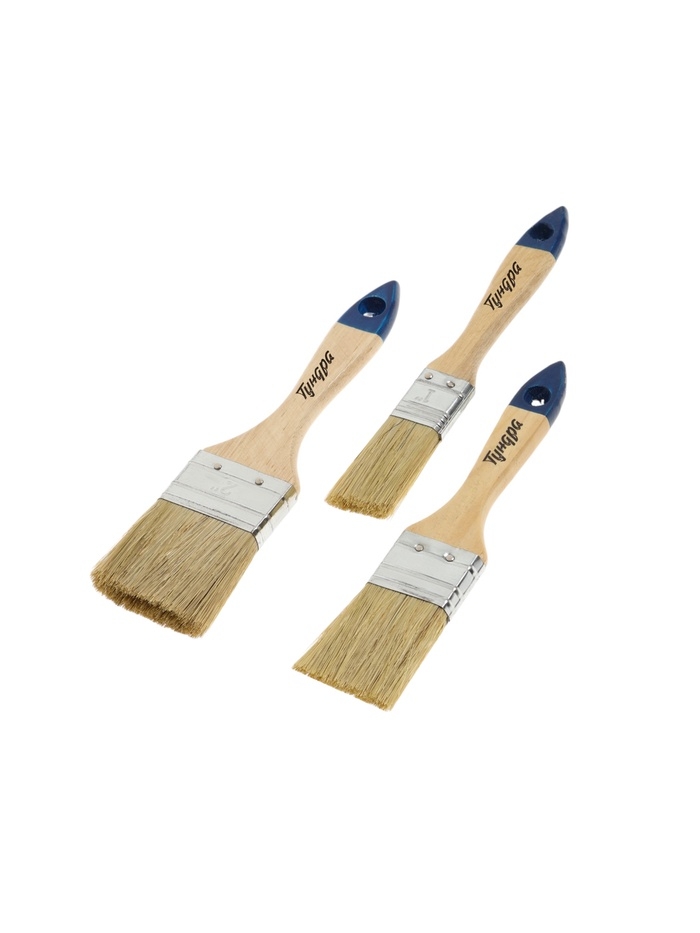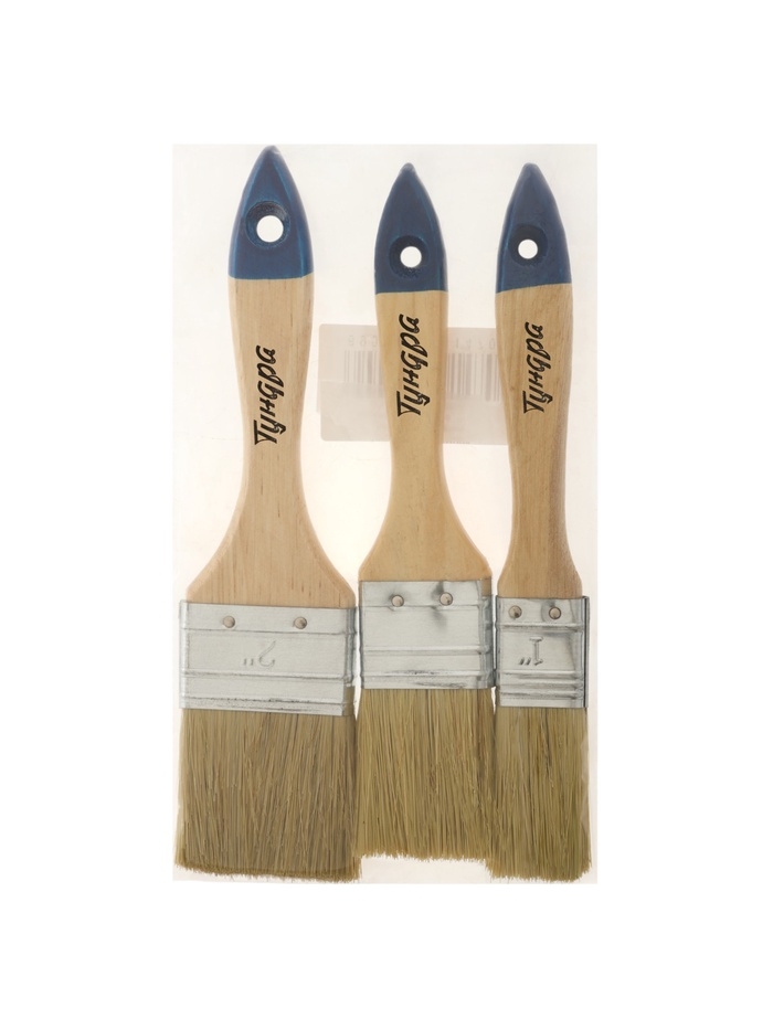 Набор кистей ТУНДРА, натуральная щетина, деревянная рукоятка, 1-1.5-2" (25, 38, 50 мм)