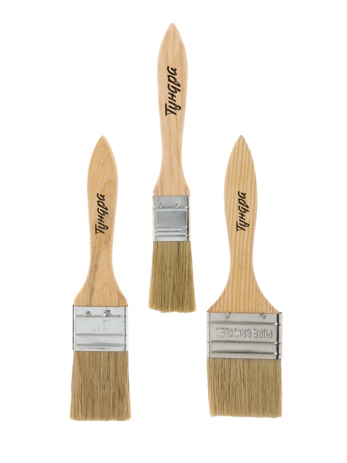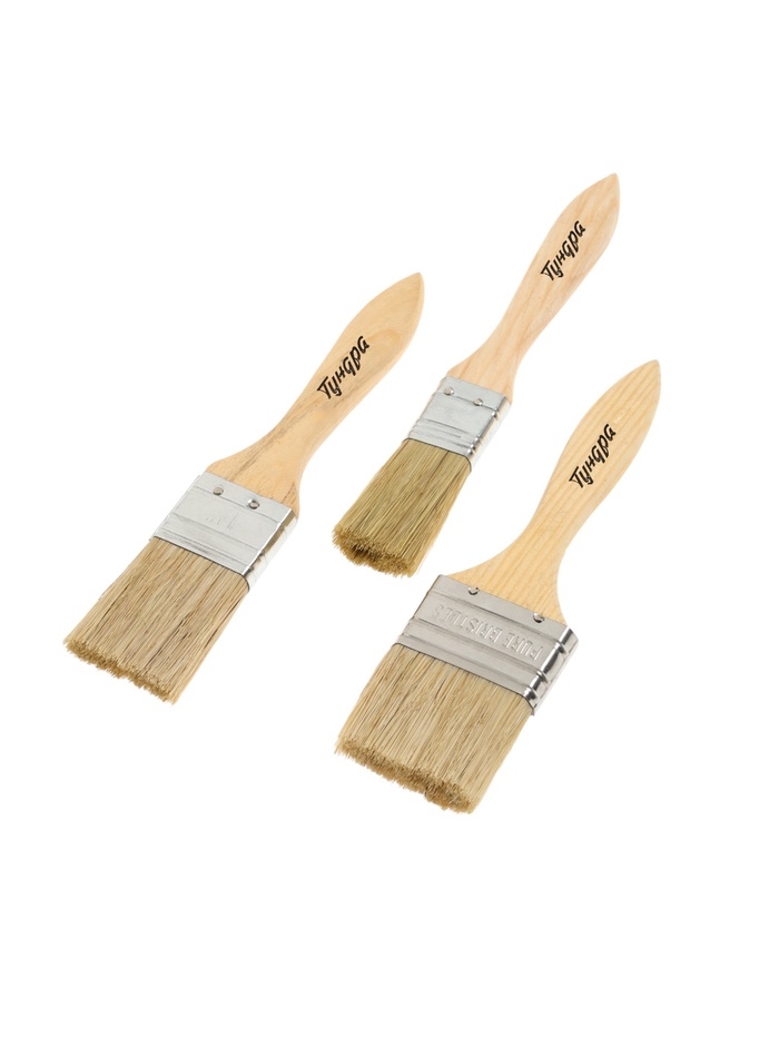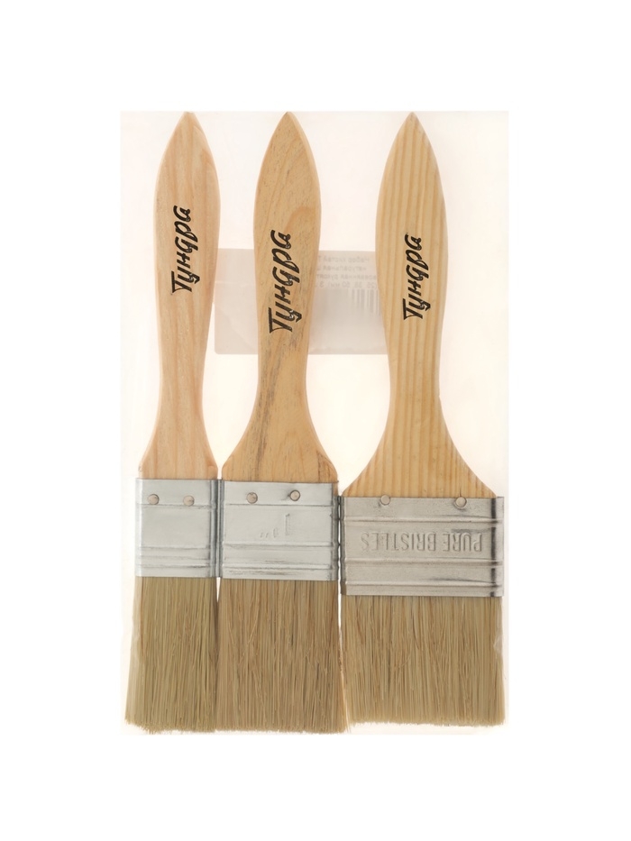 Набор кистей ТУНДРА, натуральная щетина, деревянная рукоятка, 1-1.5-2" (25, 38, 50 мм)