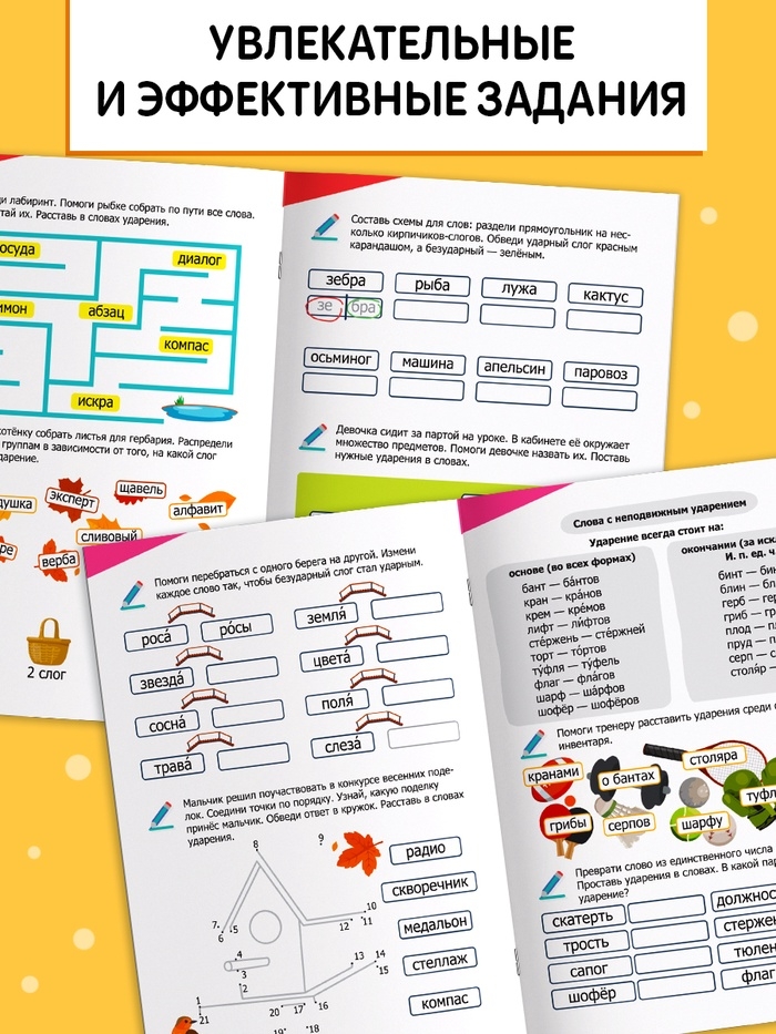 Тренажёр "Куда поставить ударение?", 36 страниц.