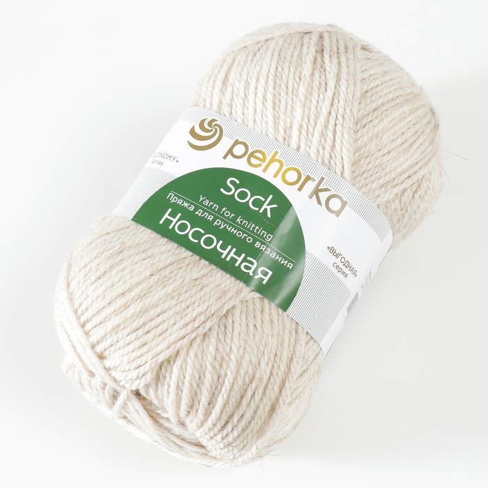 Пряжа для вязания спицами, крючком «Пехорский текстиль. Носочная», 50% шерсть, 50% акрил, 200 м/100 г, (01 белый)