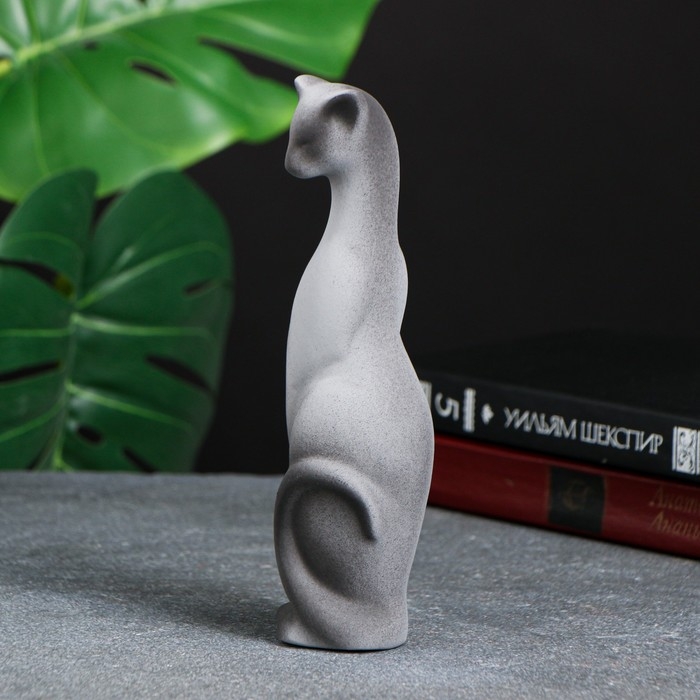 Фигура "Кошка Багира наклоненная" серая/черный 4х5х20см