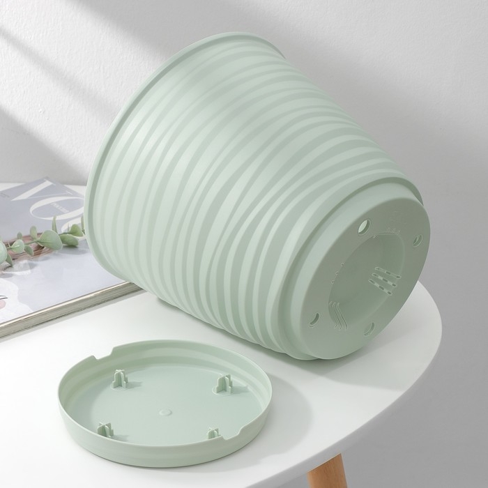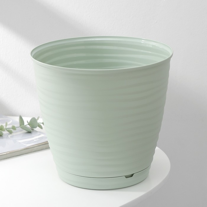Горшок для цветов с поддоном Saffron, 5,4 л, d=22,4 см, h=20,5 см, цвет светло-зелёный