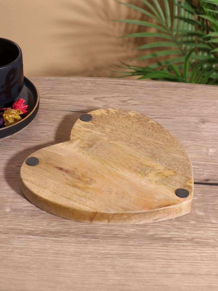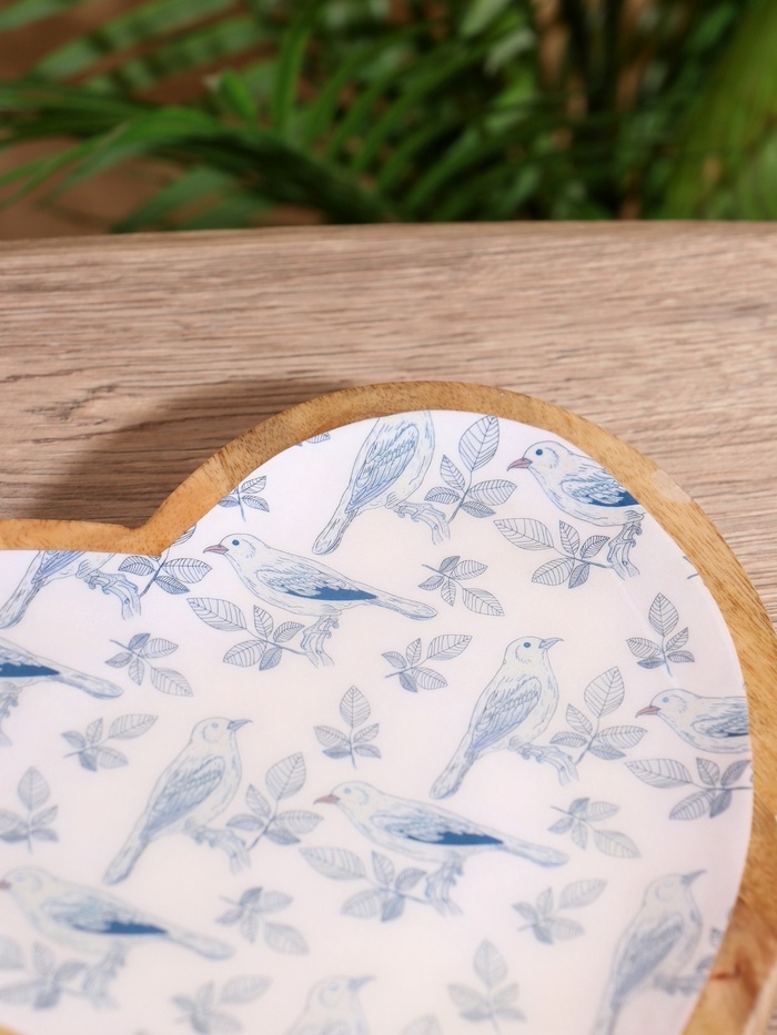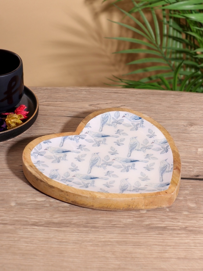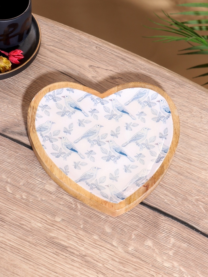 Блюдо в форме сердца «Синие птицы», дерево манго, 20.5×20×2.3 см