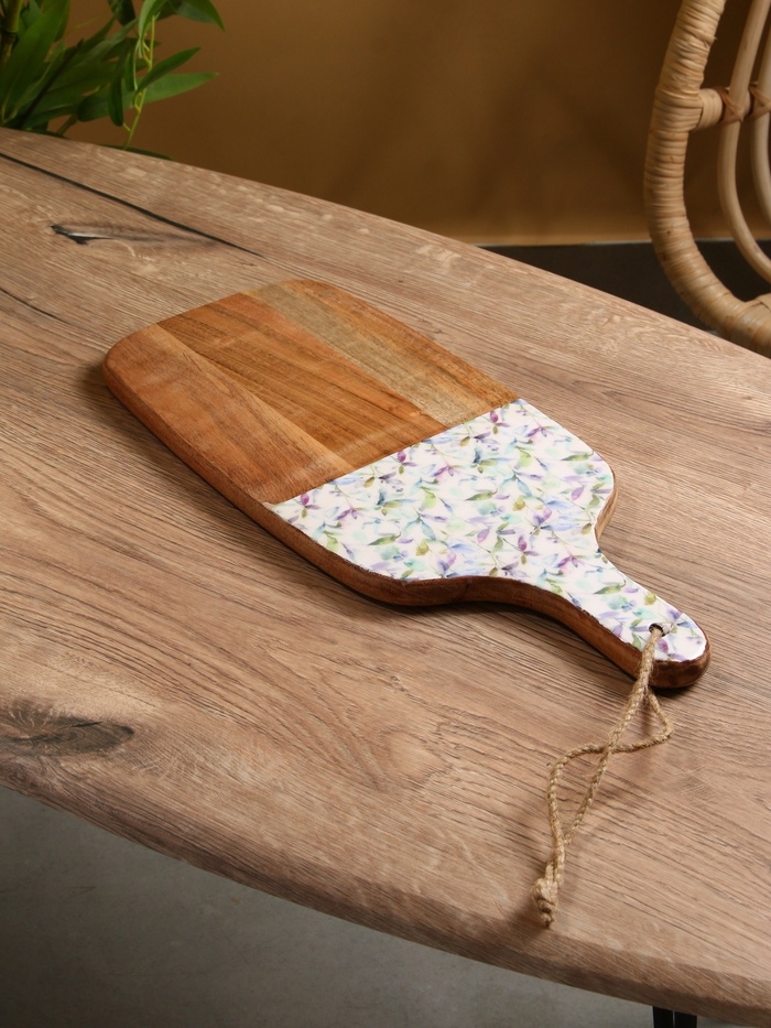 Доска разделочная прямоугольная "Оттенки сирени" дерево манго 41х18 см