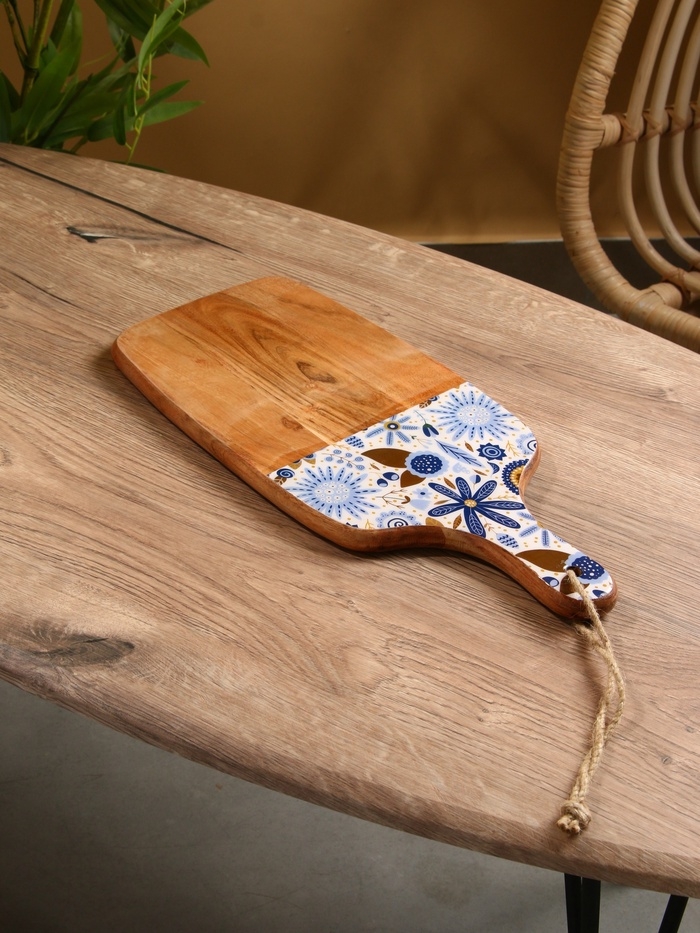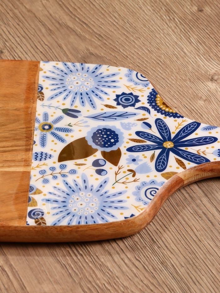 Доска разделочная прямоугольная "Васильки" дерево манго 41х18 см