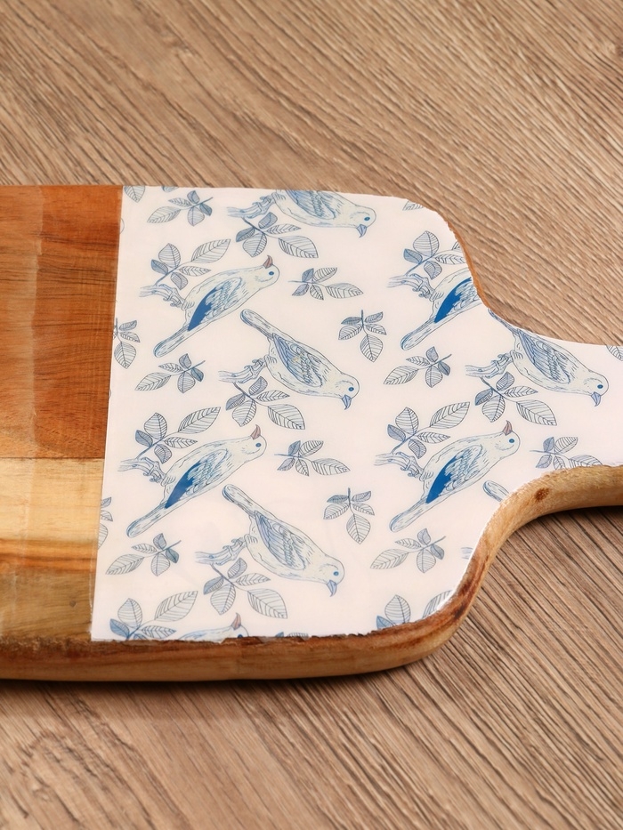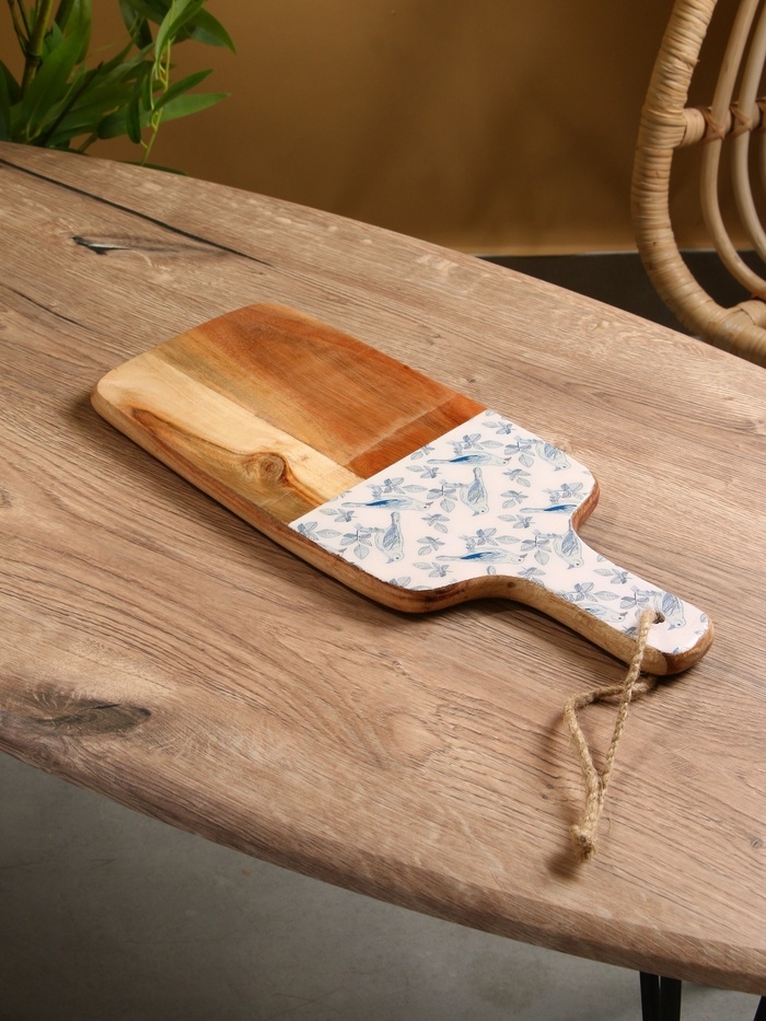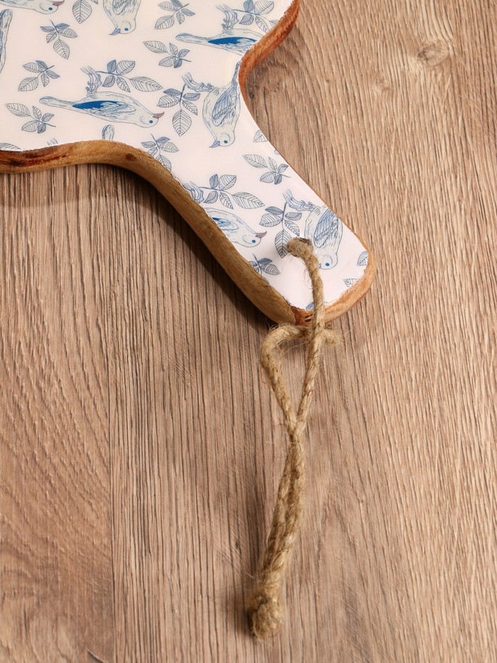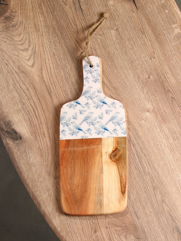 Доска разделочная прямоугольная "Синие птицы" дерево манго 41х18 см