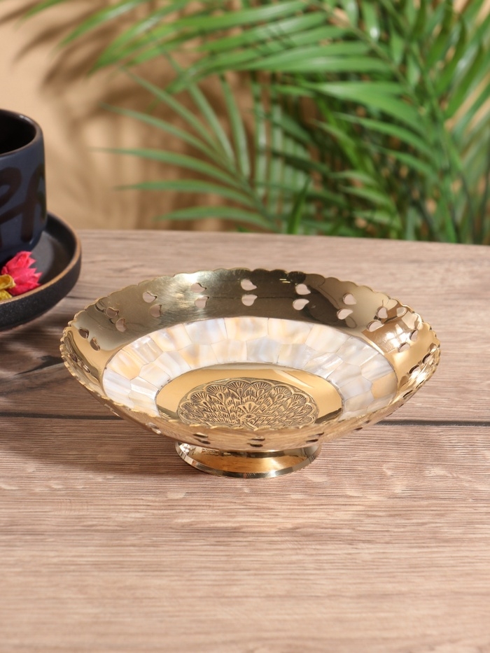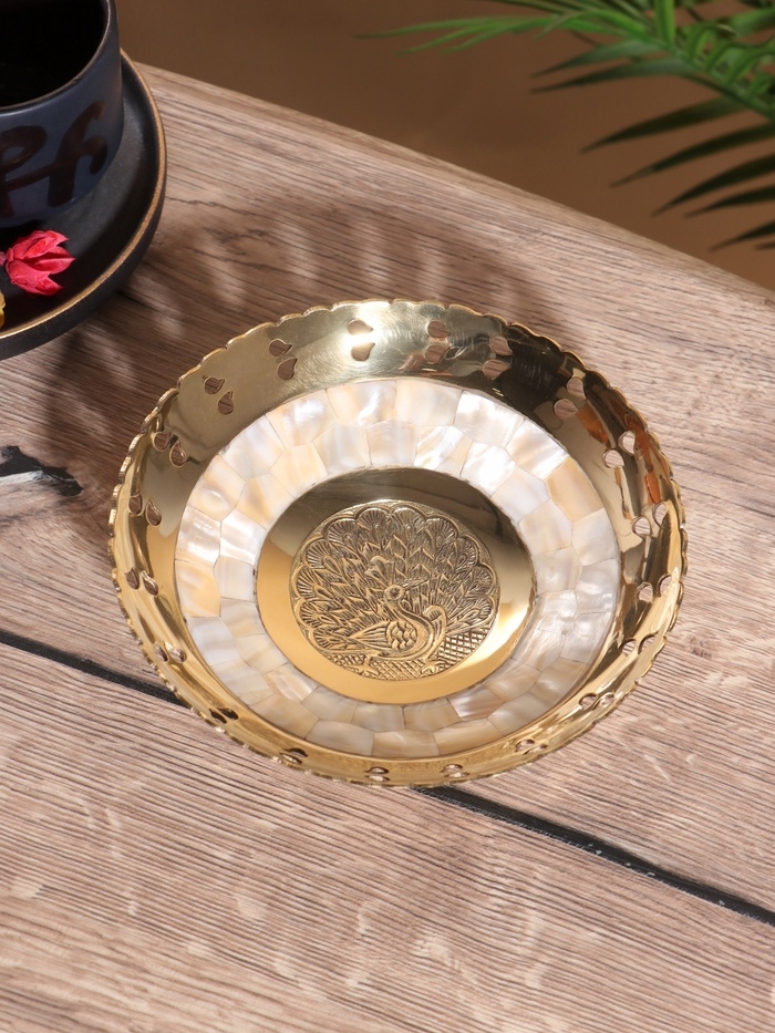 Чаша "Золотой павлин" латунь с перламутром 16,5х16,5х5 см