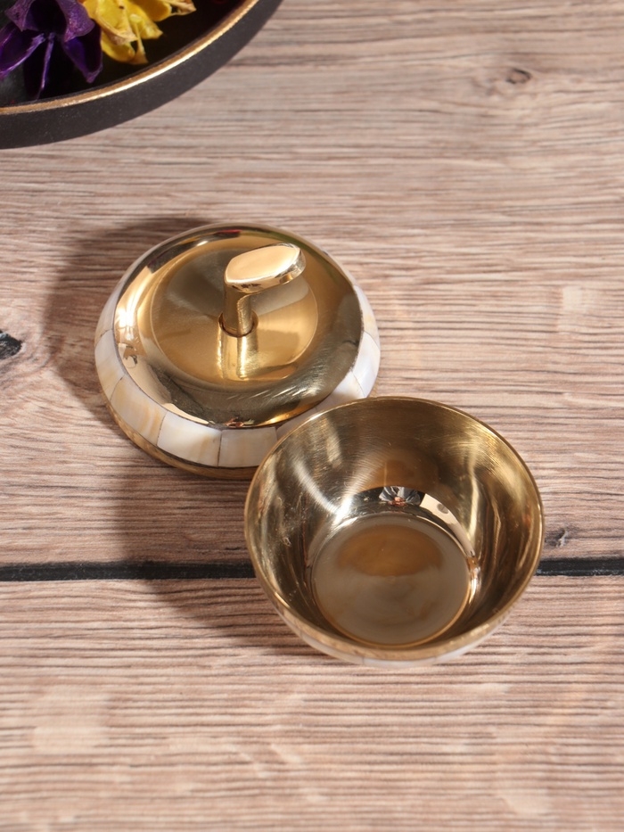 Шкатулка "Яблоко золотое" латунь с перламутром 6х6х6,5 см