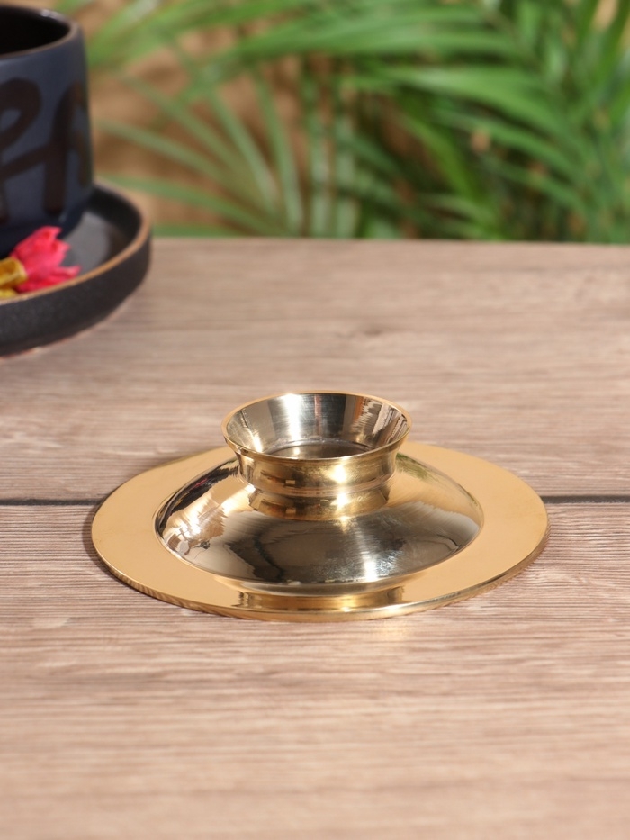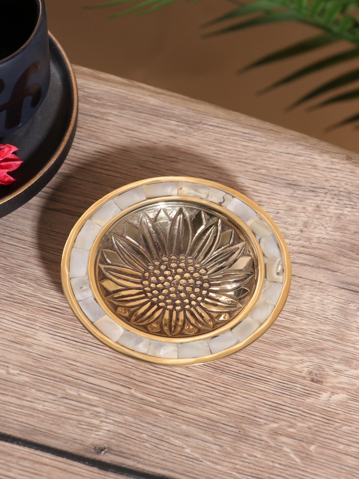 Блюдо сервировочное на ножке "Подсолнух" латунь с перламутром 11х11х2,5 см