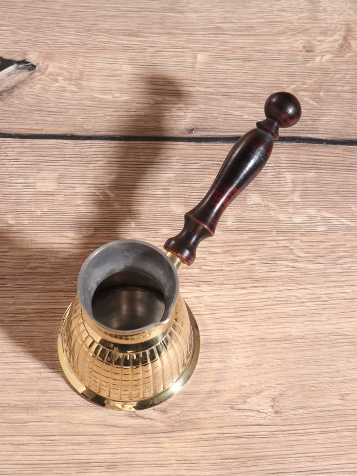 Турка с деревянной ручкой, латунь, 9×23×10 см