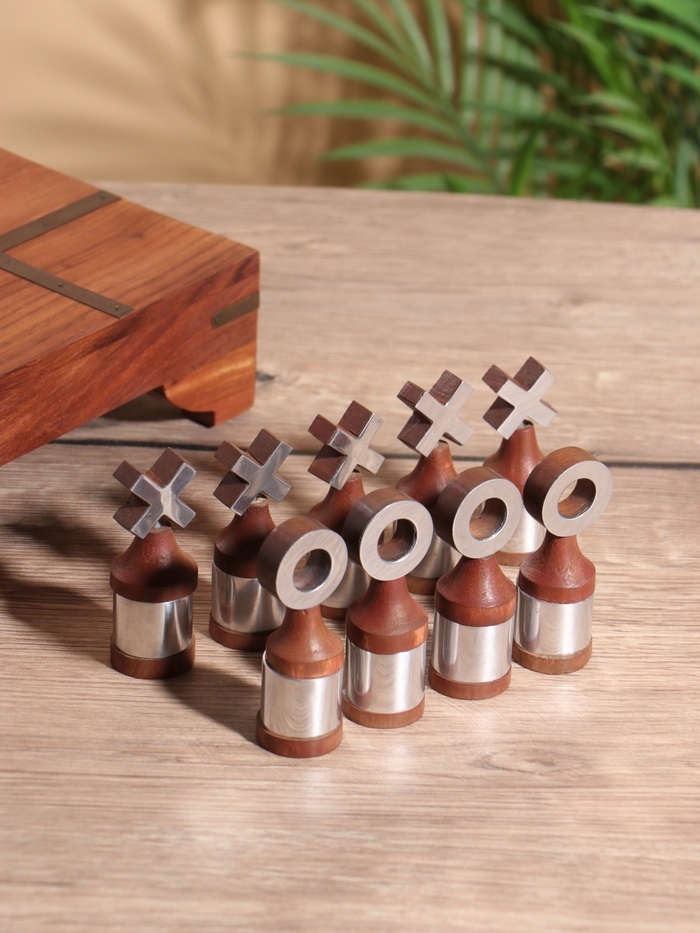 Настольная игра "Крестики-нолики" 20х20 см, манговое дерево, алюминий
