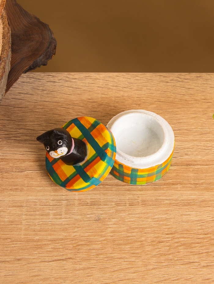Сувенирная шкатулка «Чёрный Кот», 4.5×4.5×6 см, дерево, разноцветная