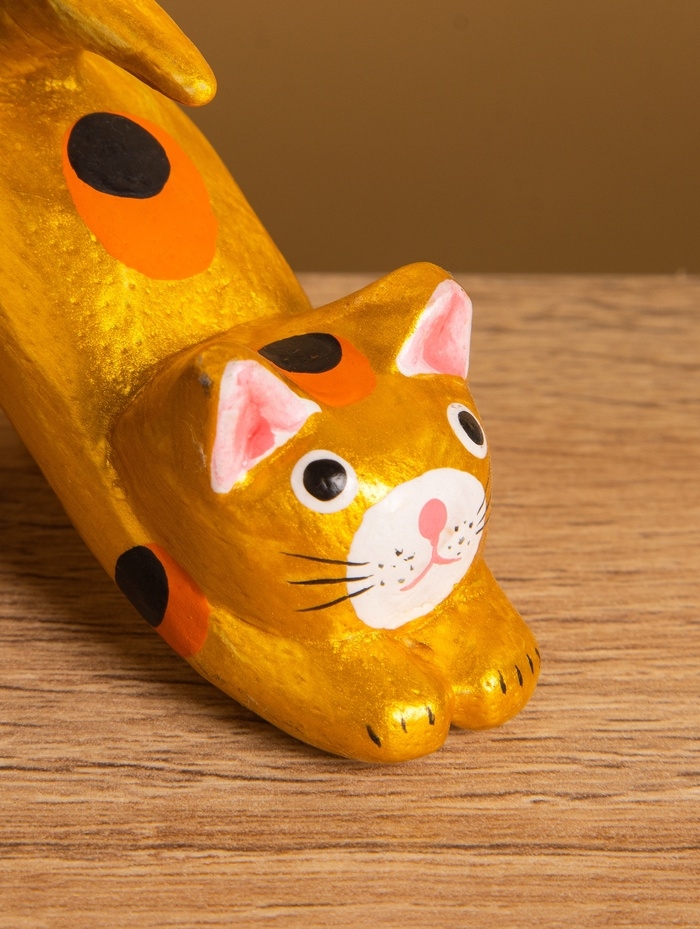 Сувенир «Потягивающийся Кот», 2.5×6×5 см, дерево, золото