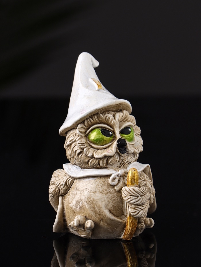 Фигура "Сова на метле" 10х7х6 см, бежевый
