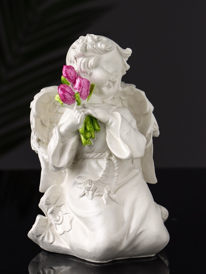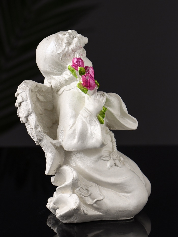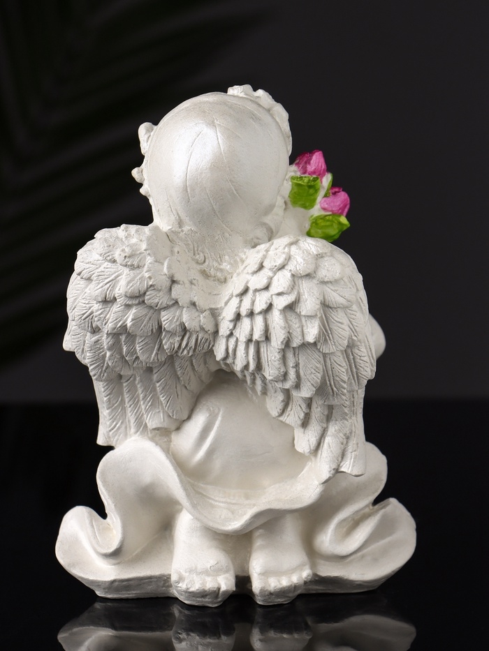 Фигура "Ангел с букетиком" 15х8х9 см, цвет перламутр