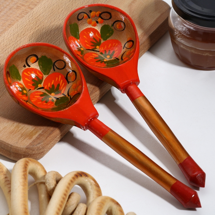 Ложка деревянная «Хохлома», полубаская, хохлома, микс