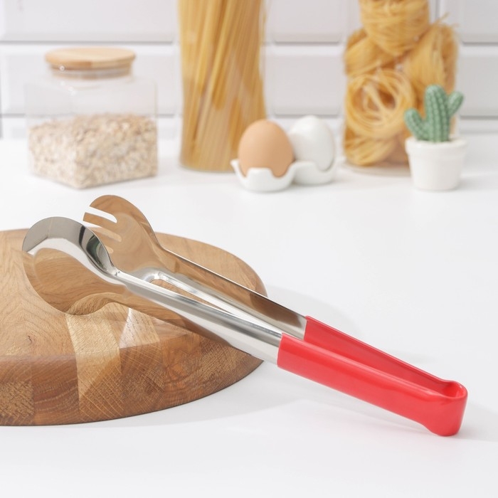 Щипцы кухонные Доляна «Краски», 27,5×6,5 см, 201 сталь, цвет красный