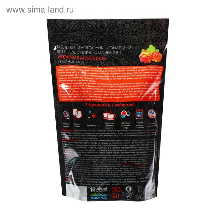 Таблетки для посудомоечных машин Rusland «Янтарная морошка», 30 шт