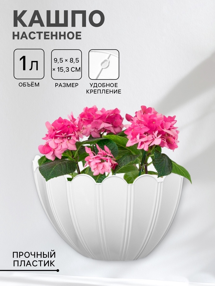 Кашпо для цветов настенное «Хризантема», 1 л, 9,5×8,5×15,3 см, белое