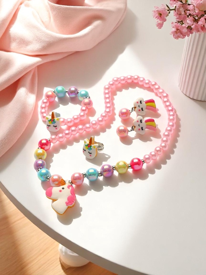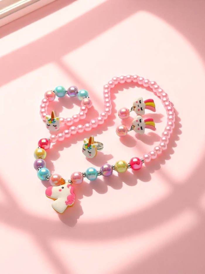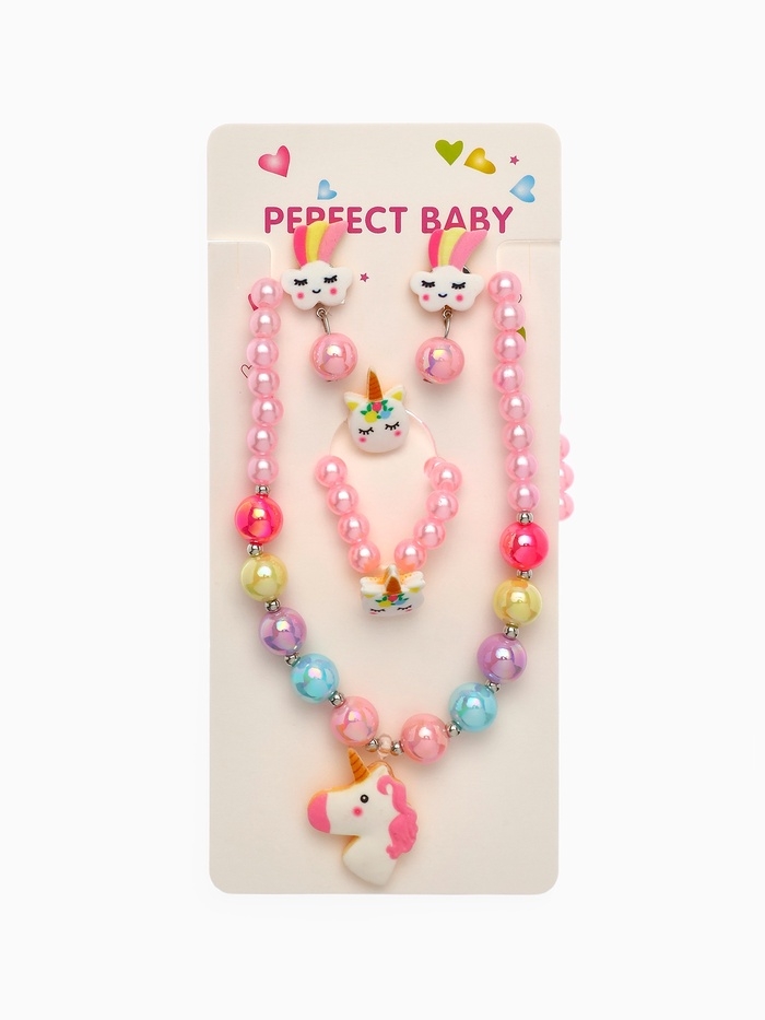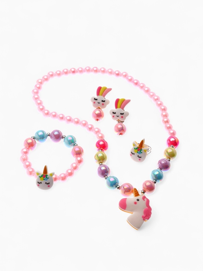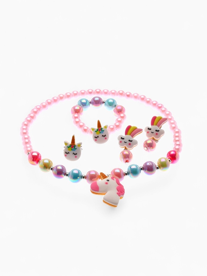 Набор детский "Выбражулька" единорог 4 пр-та: кулон, браслет, кольцо, клипсы цв. разноц