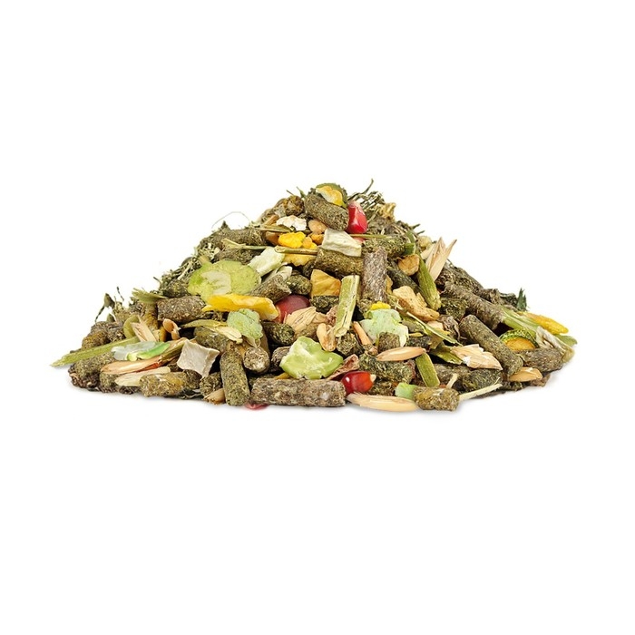 Состав: Травяные гранулы, овес плющеный, ячмень плющеный, горох плющеный, люцерна сушеная, хлопья кукурузные, пастернак сушеный, цукини сушеный, кукуруза красная, мультизерновые гранулы, фруктоолигосахариды, экстракт юкки.