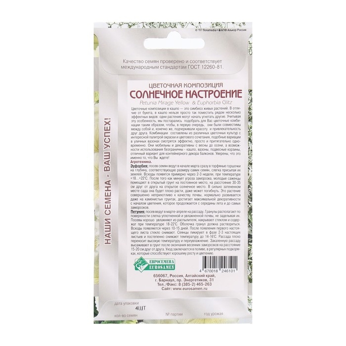 Семена Цветов Цветочная композиция Солнечное Настроение, 4 шт