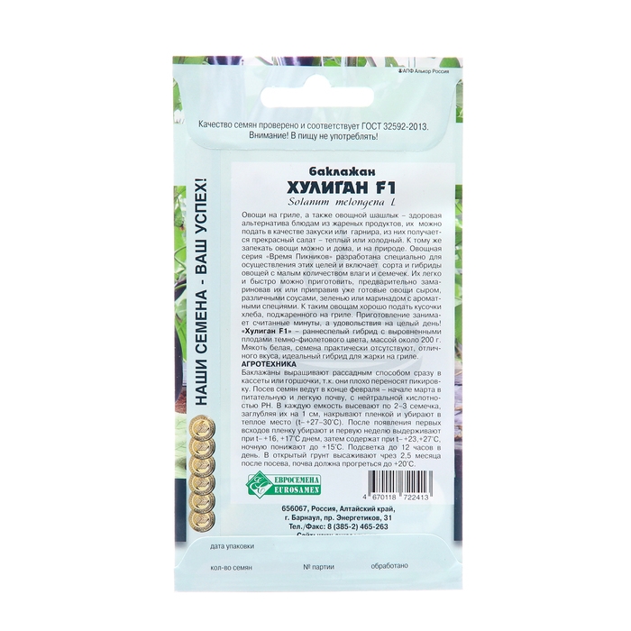 Семена Баклажан "Алёшка", F1, скороспелый, 0,05 г