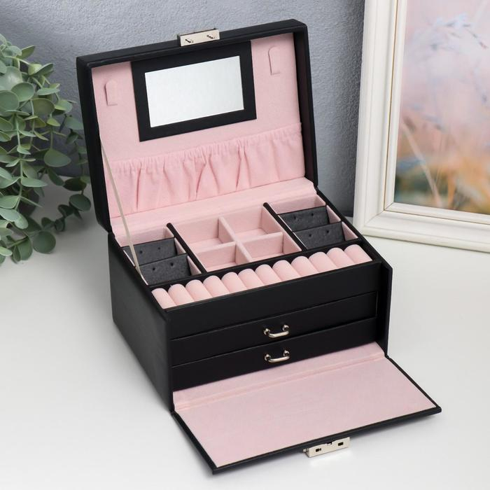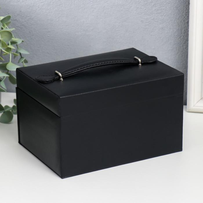 Шкатулка кожзам для украшений сундук "Гладкость. Матовый чёрный" 11х18х13,7 см
