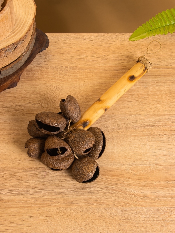 Сувенирный музыкальный инструмент «Маракас с орехами фруктового дерева», 12×12×23 см
