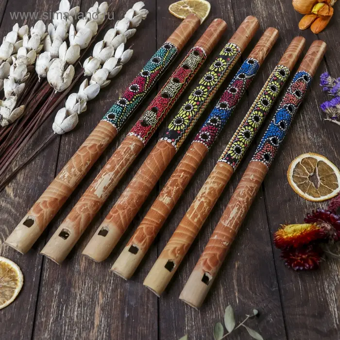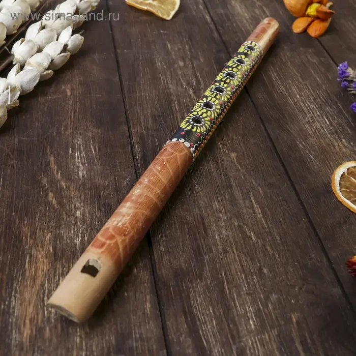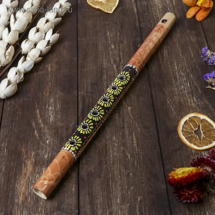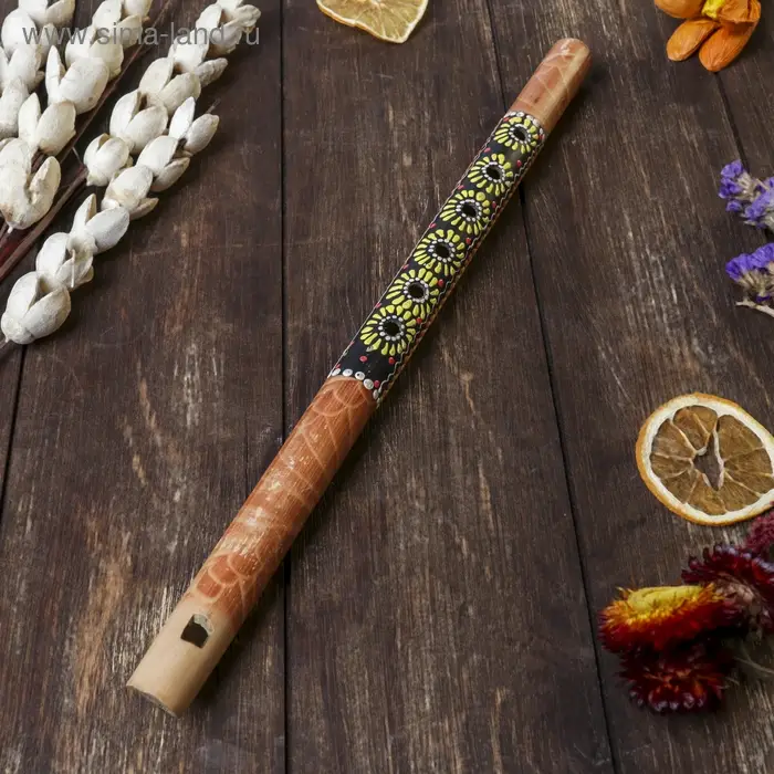 Сувенирный музыкальный инструмент бамбук "Флейта Этнический орнамент" 35x2,5x2,5 см