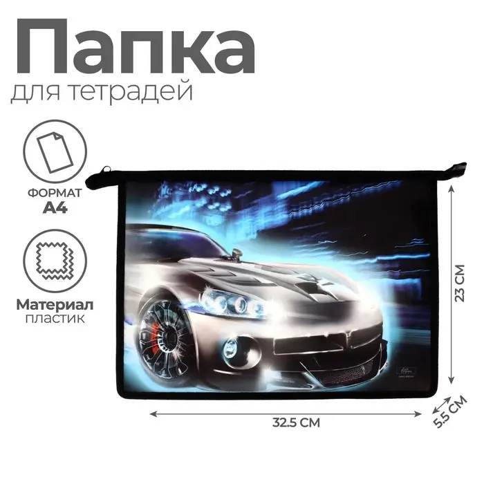 Папка для тетрадей А4, 325 х 230 х 55 мм, молния сверху, пластиковая, ПМ-А4-29 Calligrata "Авто"