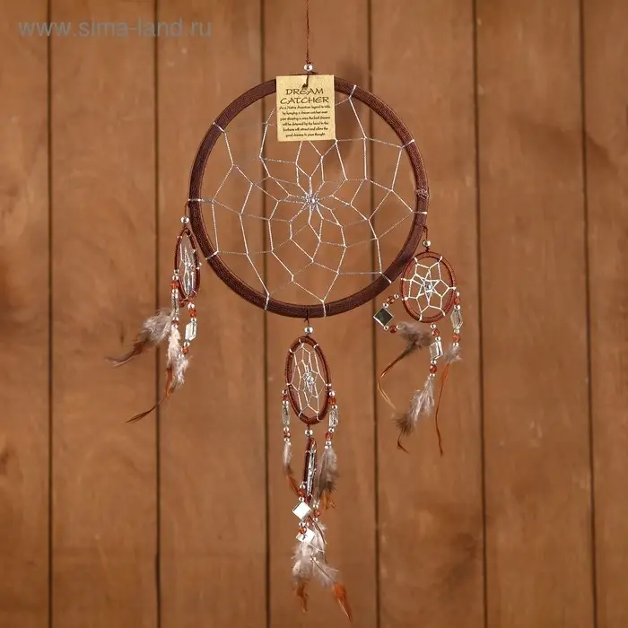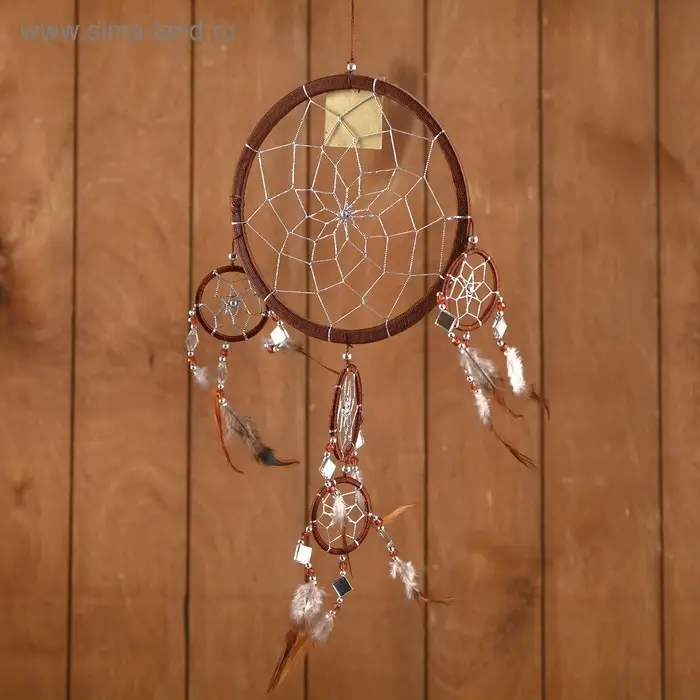 Ловец снов "Пять колец" коричневый 25х0,5х50 см