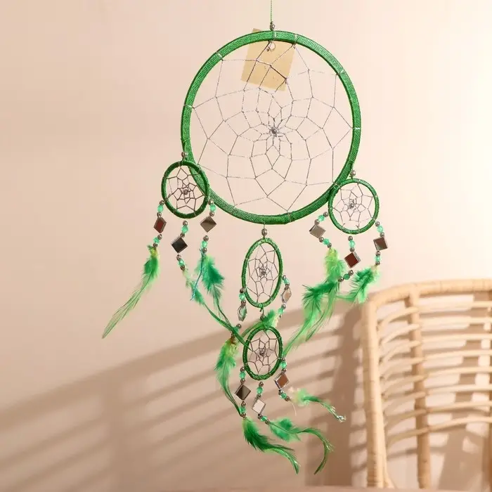 Ловец снов "Пять колец" зелёный 25х0,5х50 см