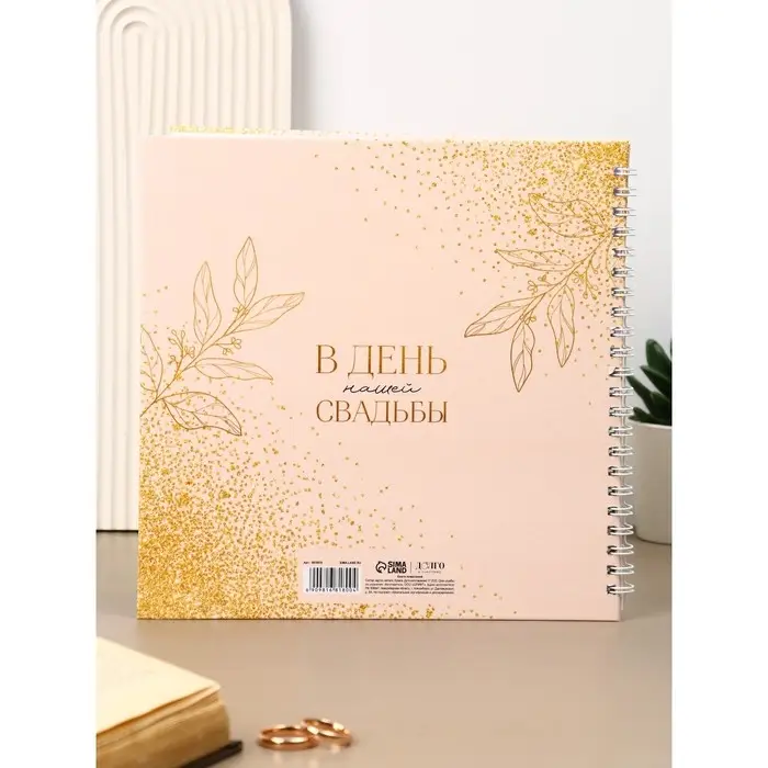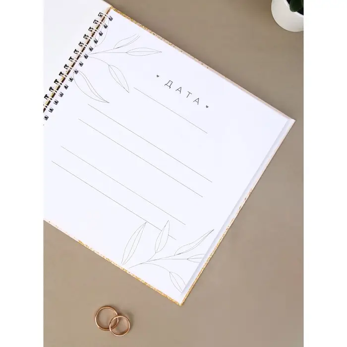 Книга свадебных пожеланий "Розовая с золотыми блестками" на пружине ВБ, 21.1 х 21 см