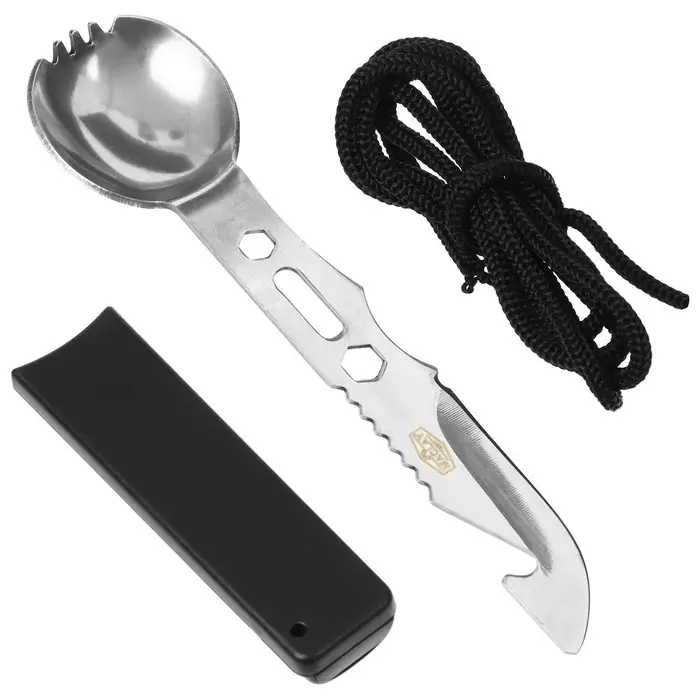Ложка-нож — необходимый аксессуар для туристических походов. Модель оснащена пластиковым чехлом. Изделие весит немного и занимает мало места в рюкзаке.