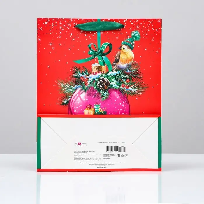 Новогодний подарочный пакет с ярким, красочным рисунком создаст праздничное настроение.
