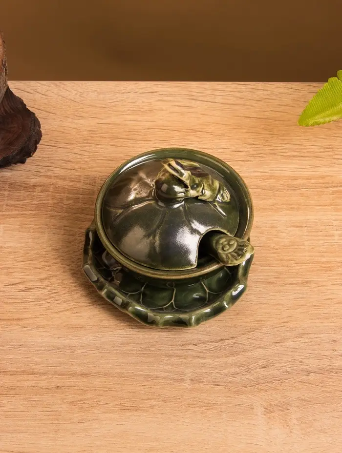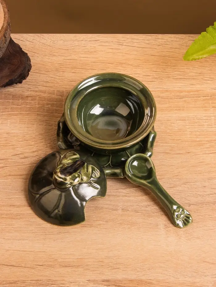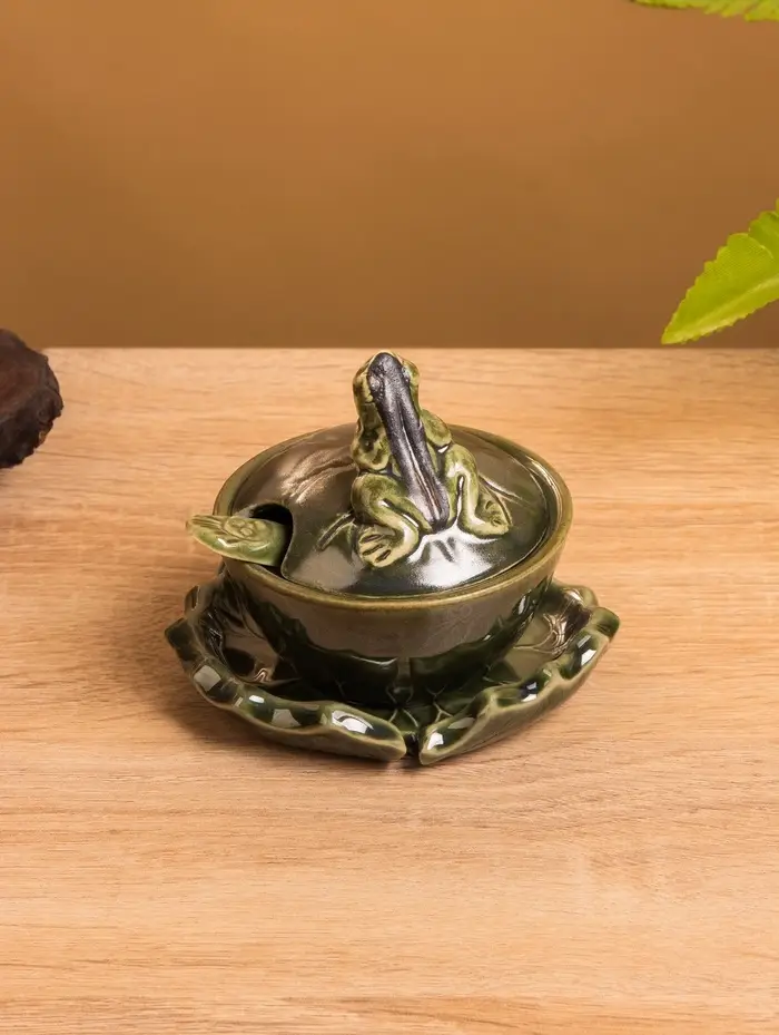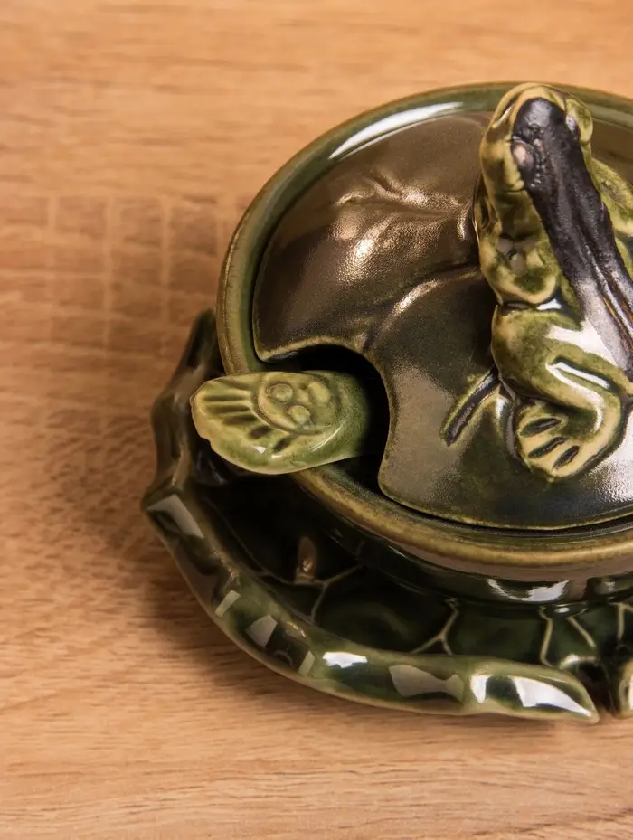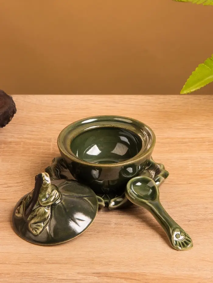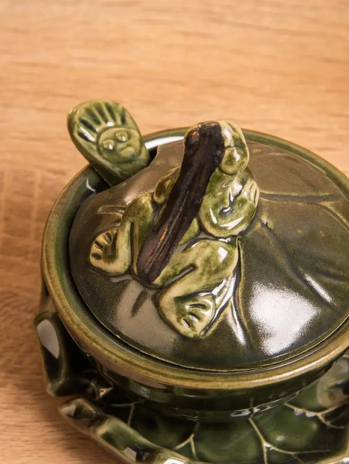 Соусник с крышкой на подставке «Лягушка», 8×9×10 см, керамика, зелёный