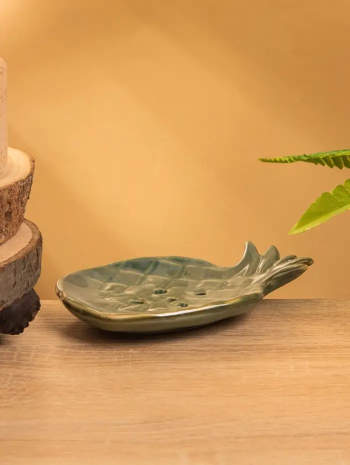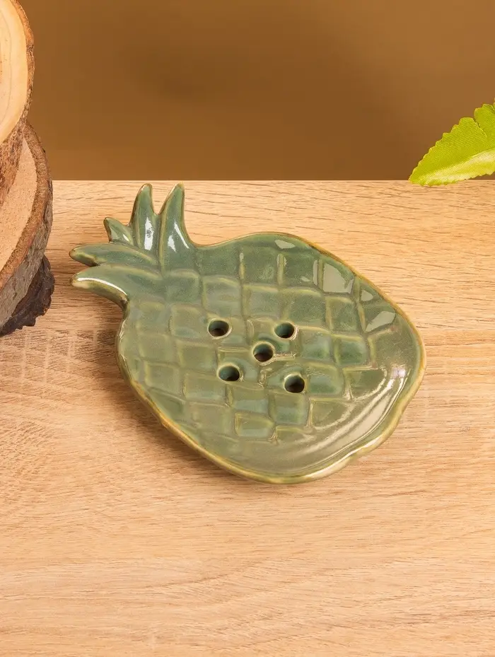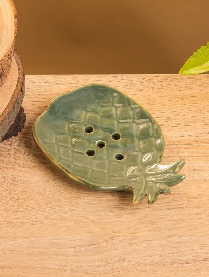 Мыльница "Ананас" керамика, цв. зелёно-коричневый, 13,5х9х2 см
