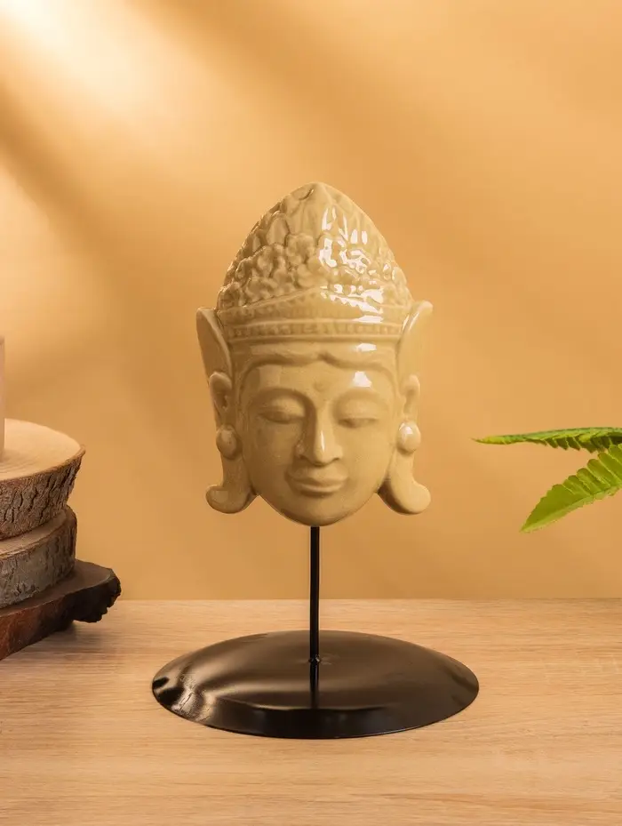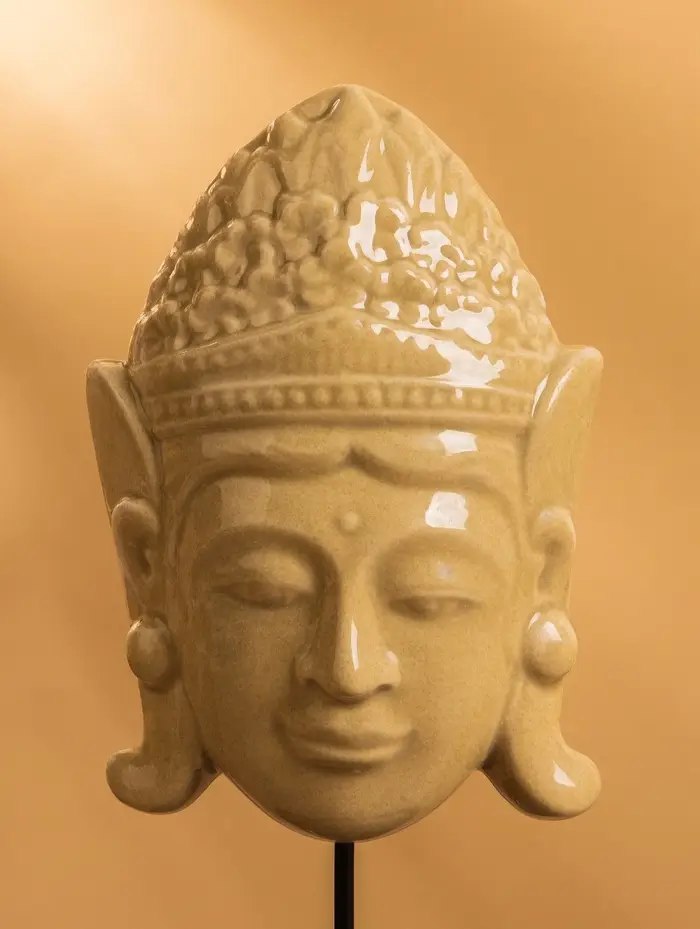Маска «Будда», на подставке, 14×14×22 см, керамика, бежевая
