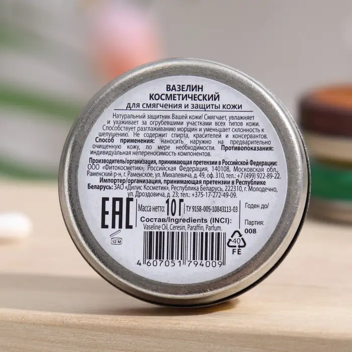 Вазелин косметический для смягчения и защиты кожи, 10 г