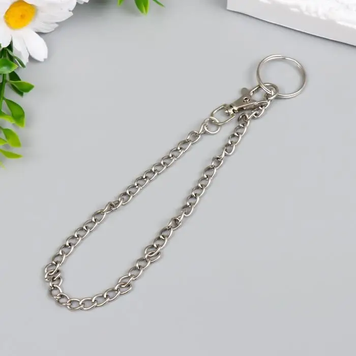 Цепочка д/ключей с карабином на кольце Витая серебро