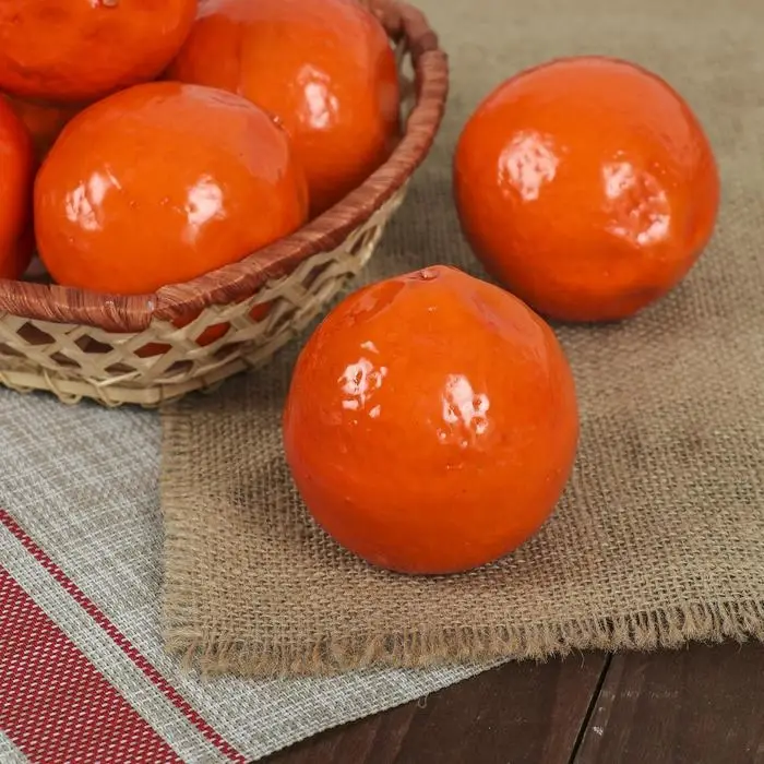 Аппетитные плоды выглядят совсем как настоящие, их так и хочется съесть. Муляж «Апельсин», d=7 см, оранжевый станет отличным дополнением к фруктово-овощной композиции, которая украсит стол, витрину или любую другую поверхность.