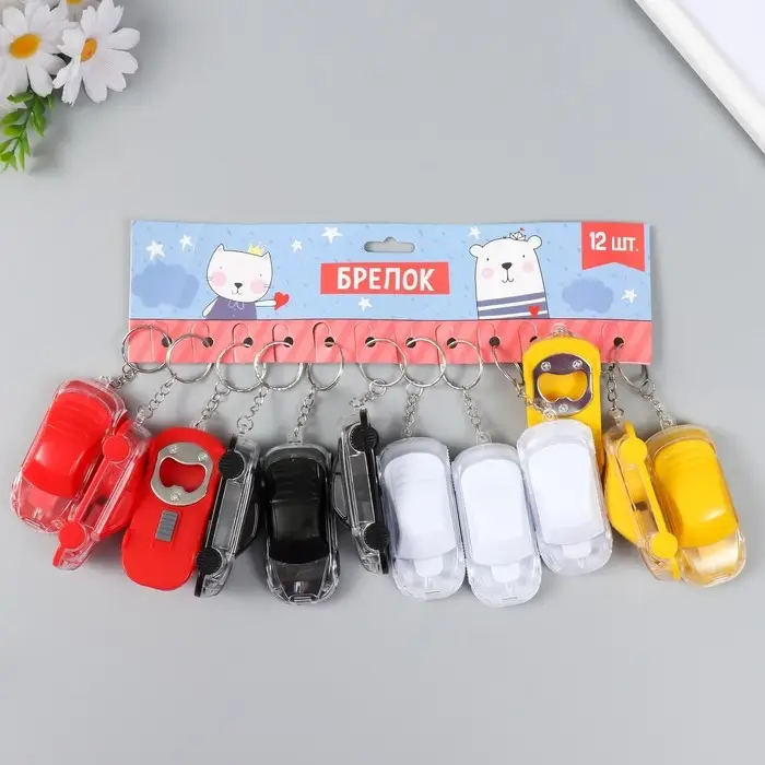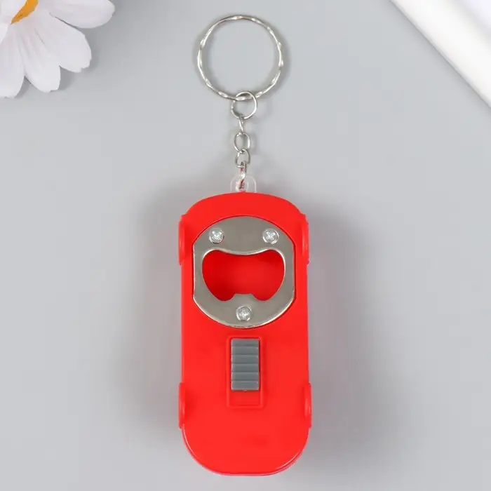 Фонарик брелок для ключей на кольце «Машина», с открывашкой, мигает, 2.7×3.6×7.8 см, МИКС