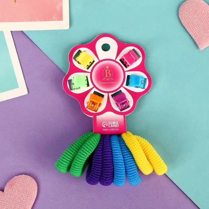 Набор для волос «Радуга», 8 резинок, 6 крабов