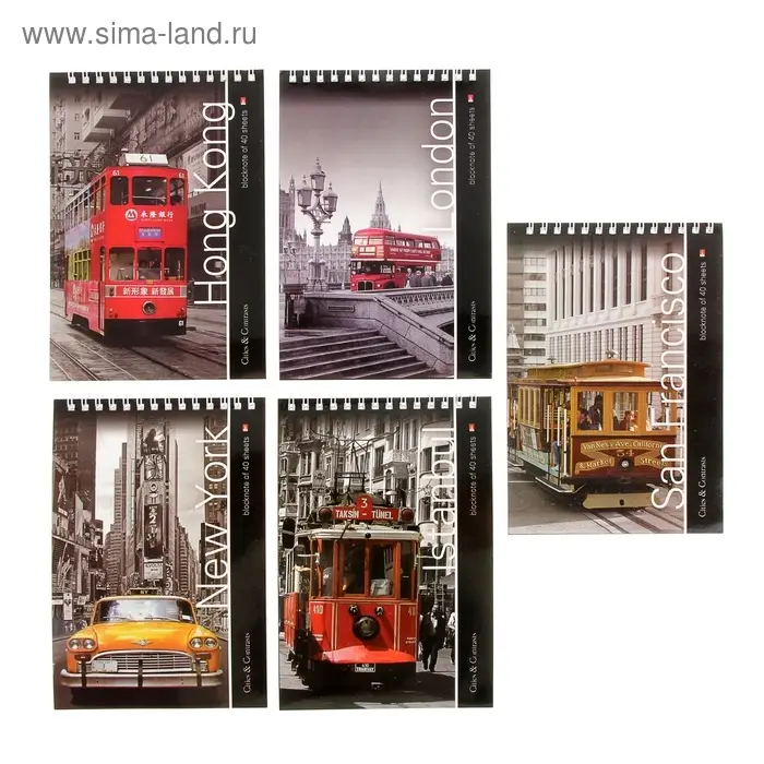 Блокнот А5, 40 листов на гребне "Города", МИКС