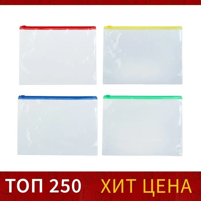 Набор папок-конвертов на ZIP-молнии A5, 150 мкм, Calligrata, прозрачные, 10 штук, МИКС