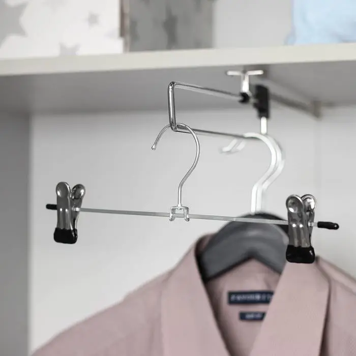 Вешалка для брюк и юбок с зажимами, 30×10 см, серебряная