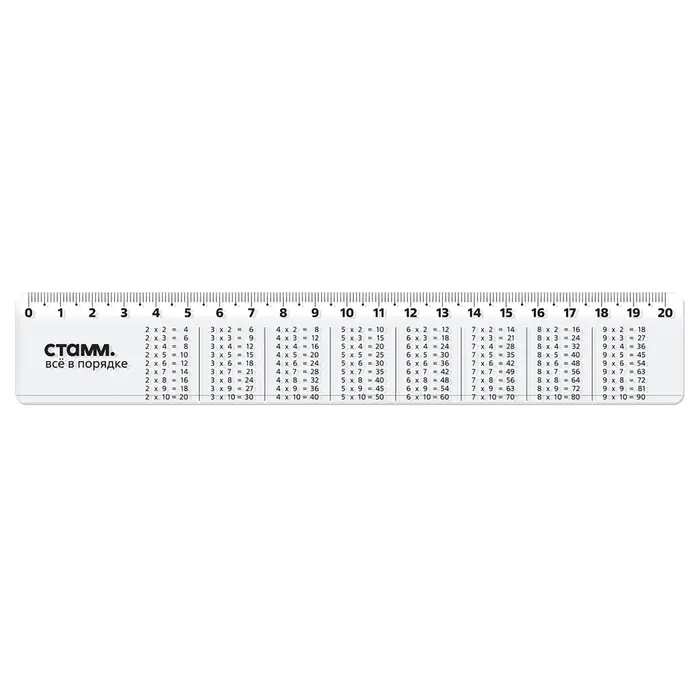 Линейка 20 см Стамм "Таблица умножения", со справочным материалом, пластиковая, прозрачная, бесцветная