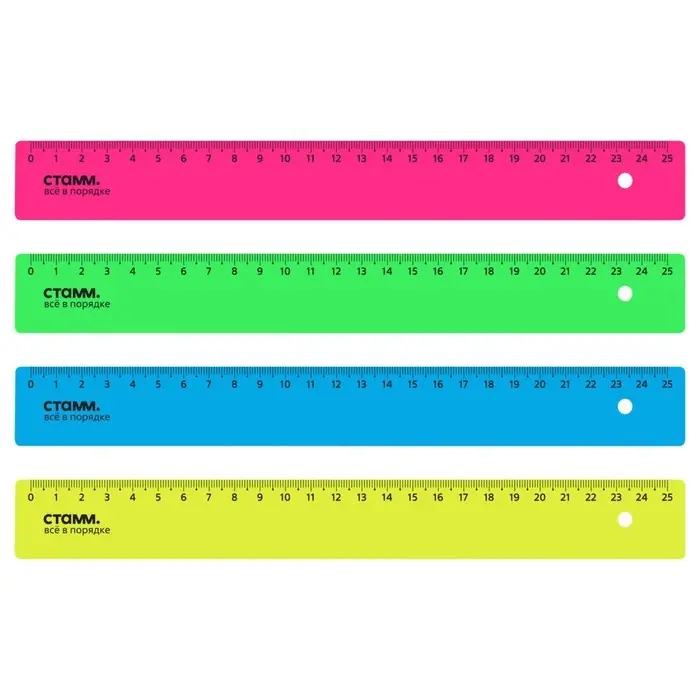 Линейка 25 см Стамм, пластиковая, непрозрачная, неоновые цвета, европодвес, микс